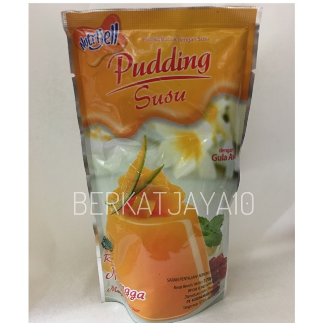 Nutrijell puding susu rasa mangga, rp12.900 ; Puding susu nutrijell mangga, rp8.750 ; Nutrijell mangga•vanilla bubuk (sy pakai sendok susu bayi)•gula pasir (sesuai selera) . Nutrijel puding susu rasa mangga mango flavour 170gr (6.00oz) ; Aduk rata lalu tuang susu .